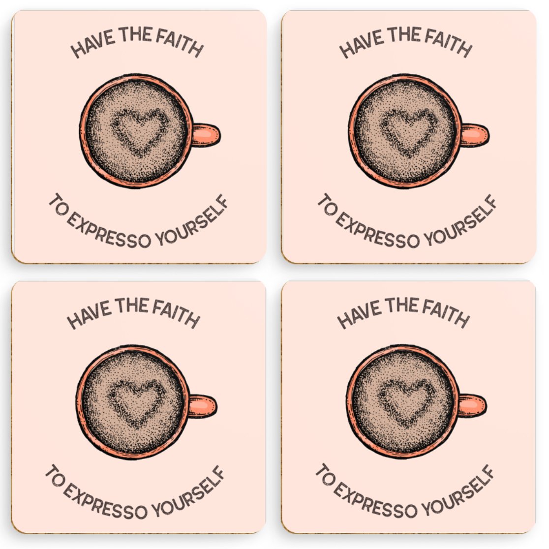 A set of four matching coasters for a classic aesthetic. A lovely addition for any faith filled home.
