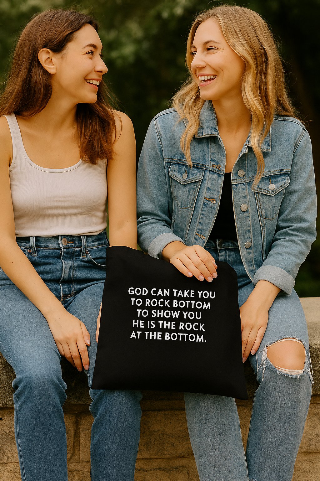Tote Bag “God can take you to rock bottom”
